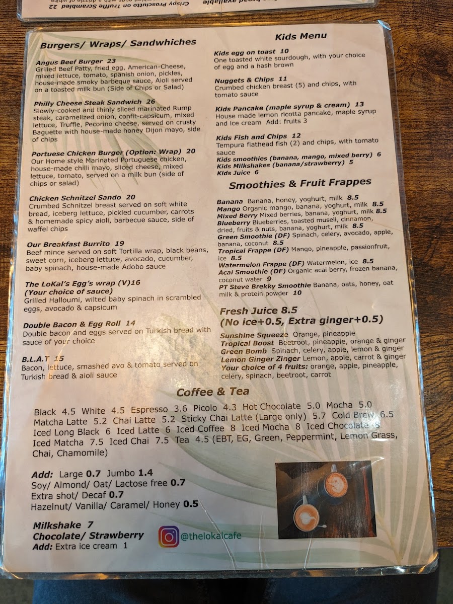 At The Lokal Cafe Wolli Creek, the menu is a delightful journey through mouth-watering dishes crafted with care. Whether you're in the mood for a freshly brewed coffee to start your day or a hearty meal to satisfy your hunger, this menu has something for everyone. The casual yet inviting vibe of the cafe shines through in the variety of options available, from healthy breakfast bowls to delicious sandwiches and satisfying mains. Each dish is designed to offer a comforting experience, perfect for a laid-back brunch or a quick catch-up with friends. With a range of options for both sweet and savory cravings, The Lokal Cafe Wolli Creek Menu is sure to please every palate.